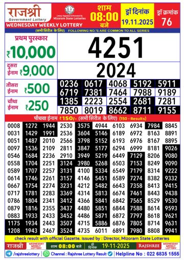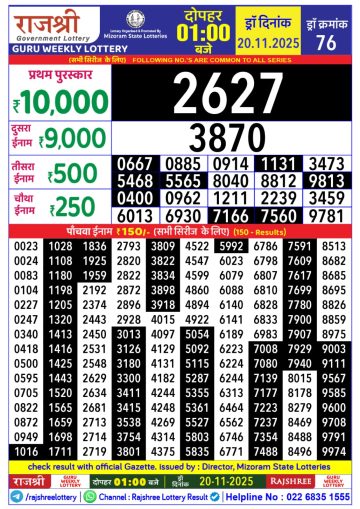 Rajshree Lottery 1PM Result Today 20/11/2025
