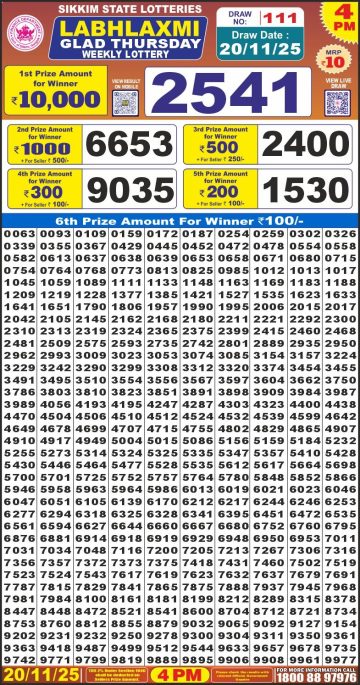 Labh Laxmi 4PM Lottery Result 20/11/2025
