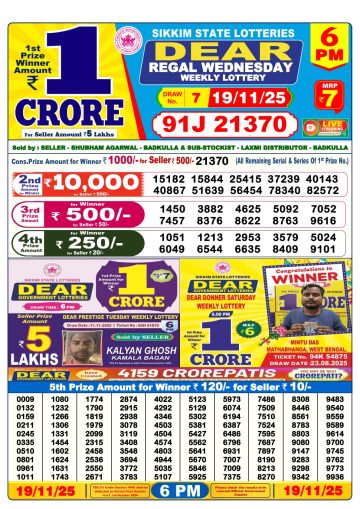 Dear 6PM Lottery Result Live 19/11/2025