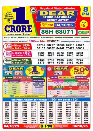 Punjab State 50 Lottery 6PM Result 04/10/2025
