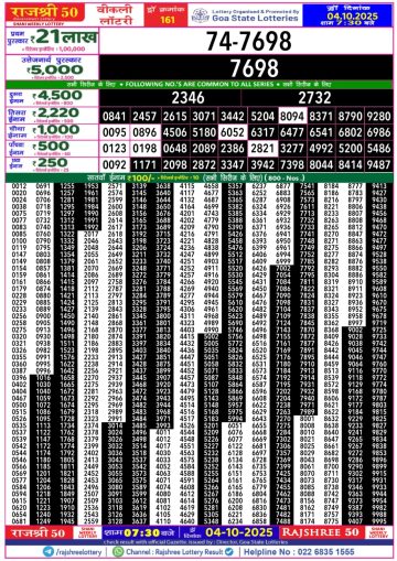 Rajshree 50 Lottery 7.30PM Result 04/10/2025