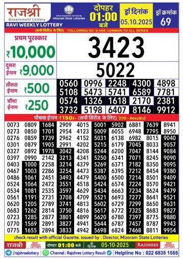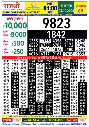Rajshree Lottery 1PM Result Today 05/10/2025