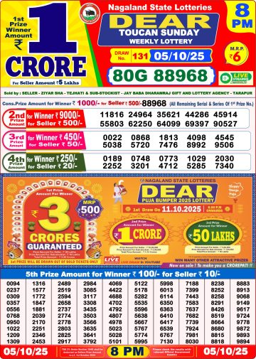 Dear Lottery 1PM Result Today 05/10/2025