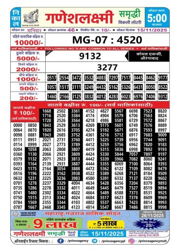 Maharashtra Ganesh Laxmi Lottery Result 15/11/2025