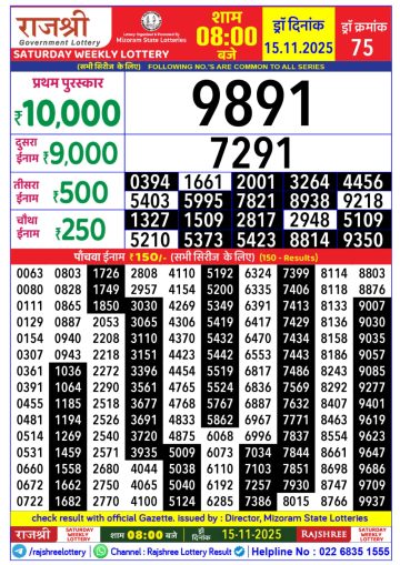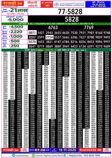 Rajshree 50 Lottery 7.30PM Result 15/11/2025