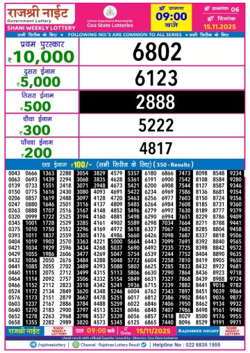 Rajshree Night Lottery 9PM Result 15/11/2025