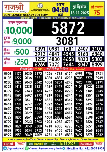 Rajshree Lottery 1PM Result Today 16/11/2025