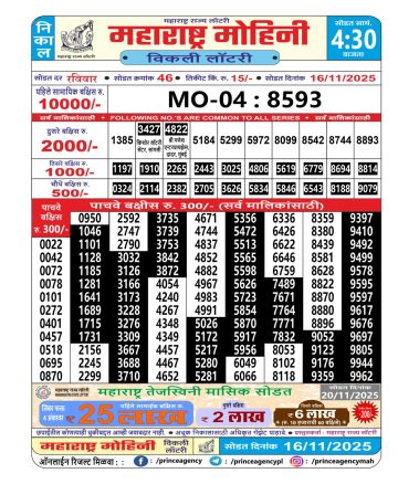 Mahrashtra Mohini Lottery Result 16/11/2025