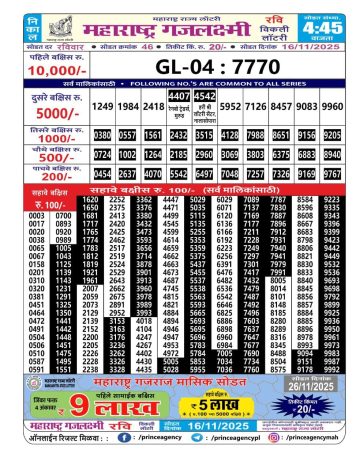 Maharashtra Gaj Laxmi Lottery Result 16/11/2025