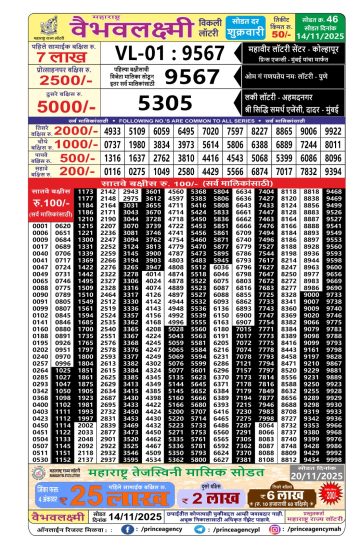 Maharashtra vaibhav 4.15PM Lottery Result 14/11/2025