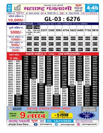 Maharashtra Gaj Laxmi Lottery Result 14/11/2025