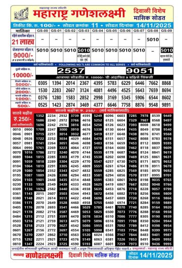 Maharashtra Ganesh laxmi Monthly Result 14/11/2025 Declared
