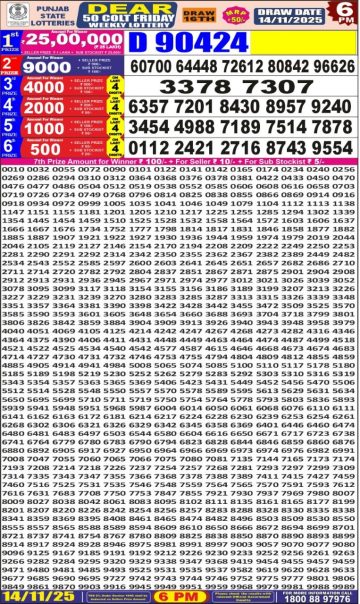 Punjab State 50 Lottery 6PM Result 14/11/2025