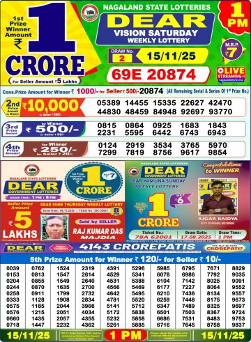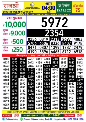 Rajshree Lottery 1PM Result Today 15/11/2025