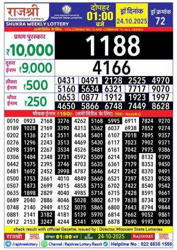 Rajshree Lottery 1PM Result Today 24/10/2025