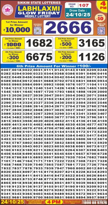 Labh Laxmi 4PM Lottery Result 24/10/2025