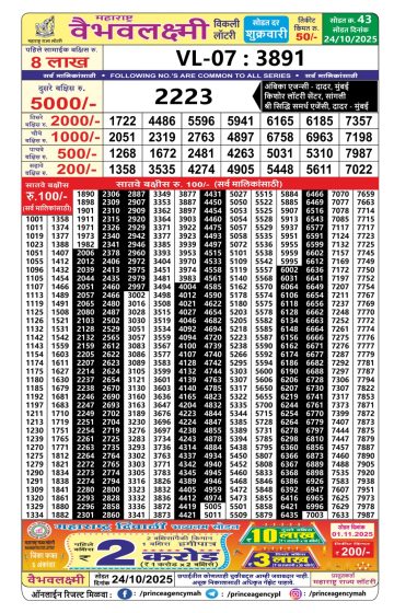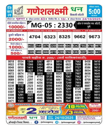 Maharashtra Ganesh Laxmi Lottery Result 24/10/2025