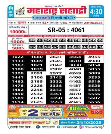 Maharashtra 4.15PM Lottery Result 24/10/2025