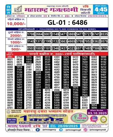 Maharashtra Gaj Laxmi Lottery Result 28/09/2025