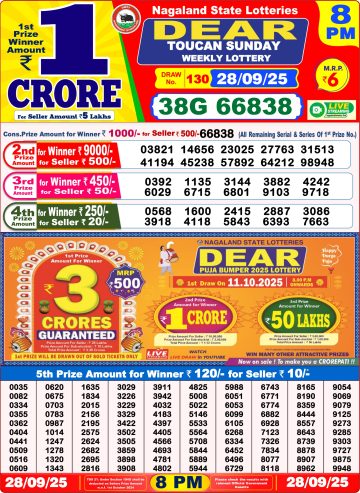 Dear 6PM Lottery Result Live 28/09/2025