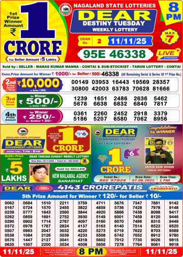 Punjab State Dear 100 Monthly Lottery Result 11/11/2025