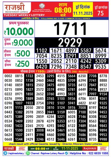 Rajshree 50 Lottery 7.30PM Result 11/11/2025