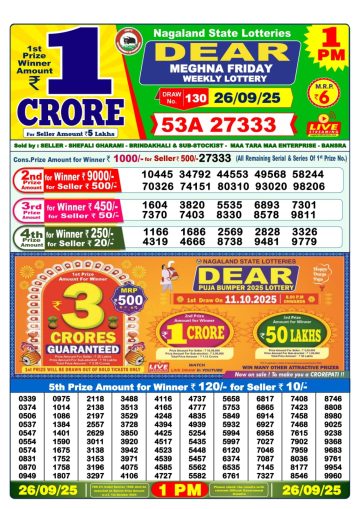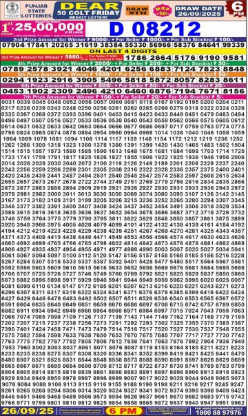Punjab State 50 Lottery 6PM Result 26/09/2025
