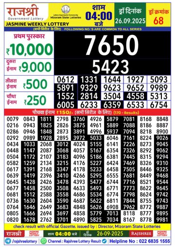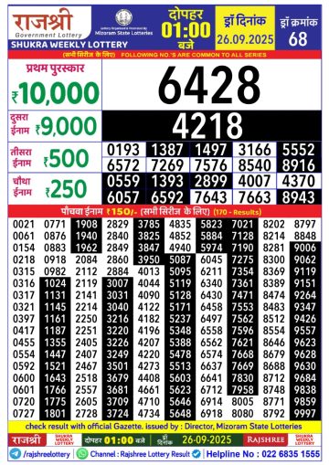 Rajshree Lottery 1PM Result Today 26/09/2025