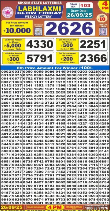 Labh Laxmi 4PM Lottery Result 26/09/2025