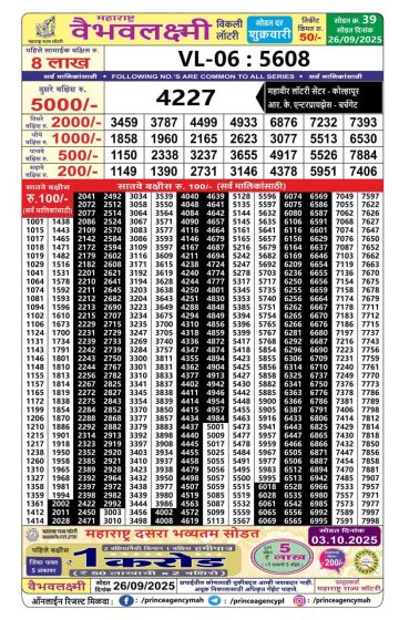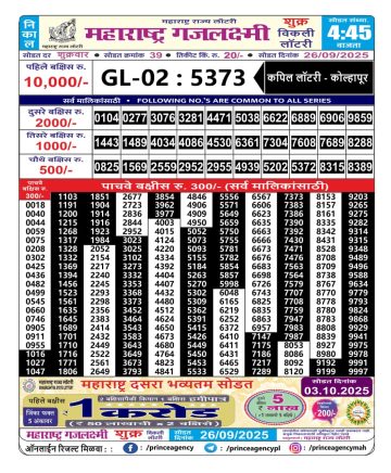 Maharashtra Gaj Laxmi Lottery Result 26/09/2025