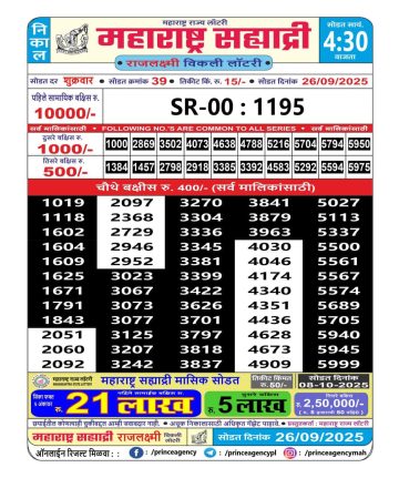 Maharashtra 4.15PM Lottery Result 26/09/2025