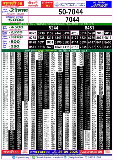 Rajshree 50 Lottery 7.30PM Result 26/09/2025