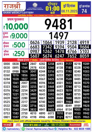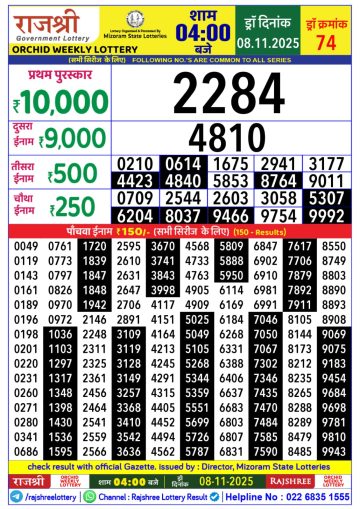 Rajshree Lottery 1PM Result Today 08/11/2025