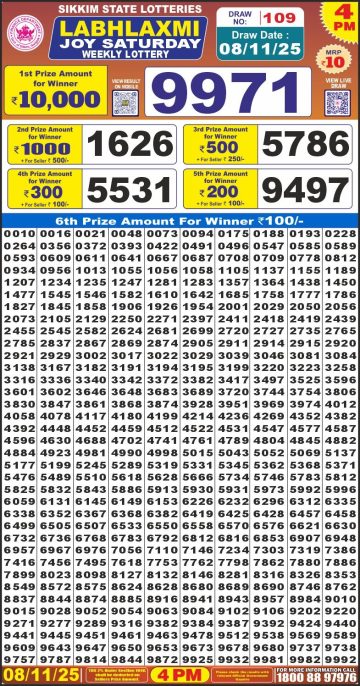 Dear Lottery 1PM Result Today 08/11/2025