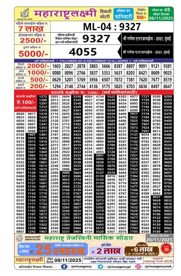 Maharashtra laxmi 4.15PM Lottery Result 08/11/2025