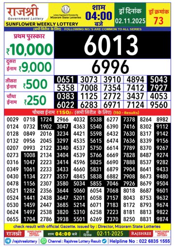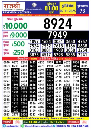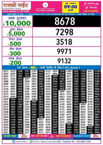 Rajshree Lottery 1PM Result Today 02/11/2025