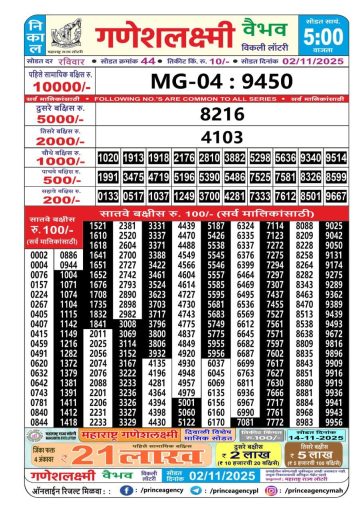 Maharashtra Gaj Laxmi Lottery Result 02/11/2025