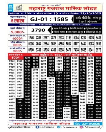 Maharashtra Gajraj Monthly Lottery result 22/10/25