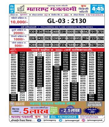 Maharashtra Gaj Laxmi Lottery Result 15/10/2025