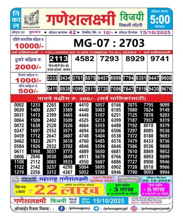 Maharashtra Ganesh Laxmi Lottery Result 15/10/2025