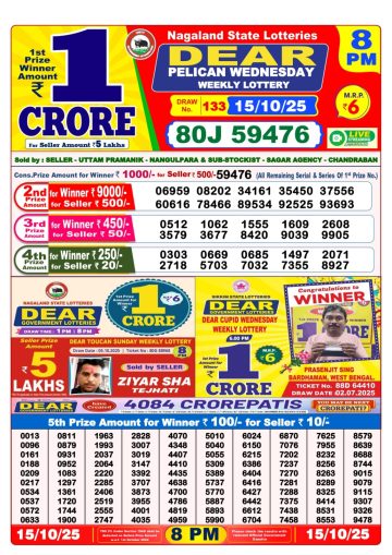 Punjab State 50 Lottery 6PM Result 15/10/2025