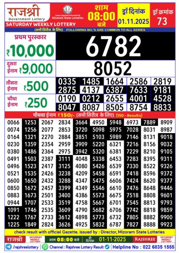 Rajshree Lottery 1PM Result Today 01/11/2025