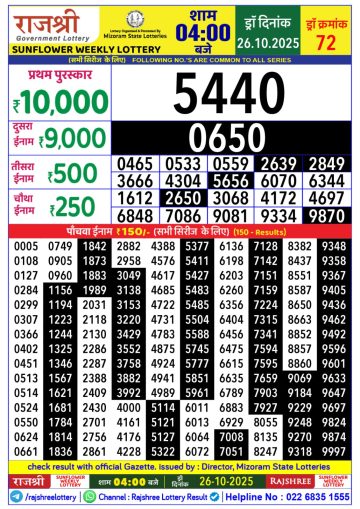 Rajshree Lottery 1PM Result Today 26/10/2025