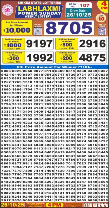 Labh Laxmi 4PM Lottery Result 26/10/2025