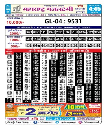 Maharashtra Gaj Laxmi Lottery Result 26/10/2025