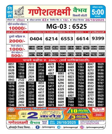 Maharashtra Ganesh Laxmi Lottery Result 26/10/2025