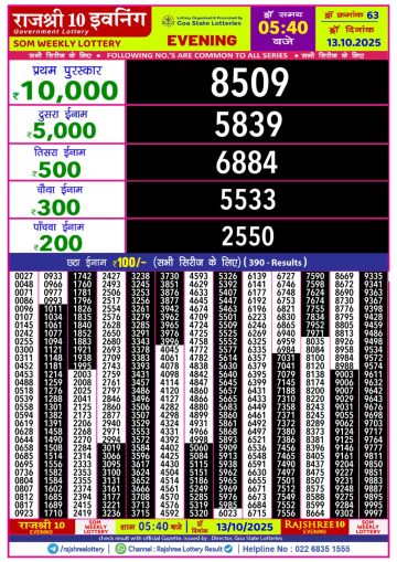 Rajshree 10 Evening 5.40PM Lottery Result 13/10/2025