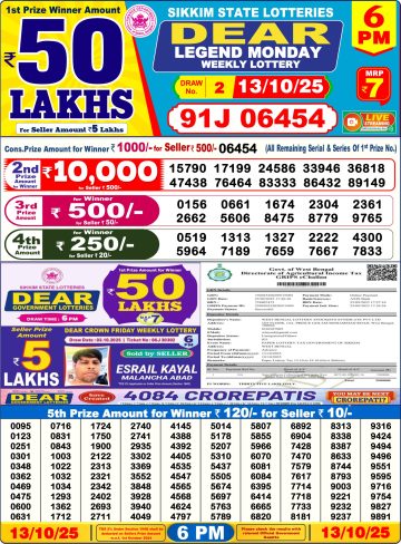 Punjab State 50 Lottery 6PM Result 13/10/2025
