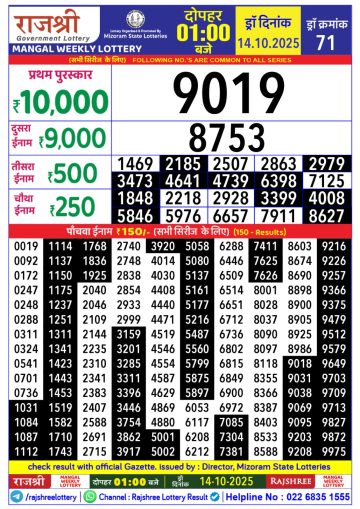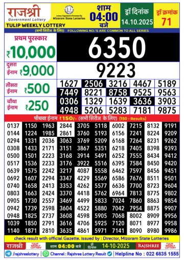 Rajshree Lottery 1PM Result Today 14/10/2025