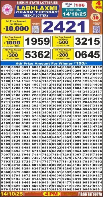Labh Laxmi 4PM Lottery Result 14/10/2025